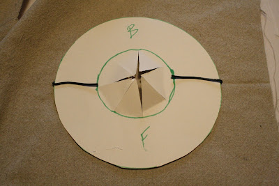 The final step is to take the brim, using the notches, glue them into the inside of the hat.