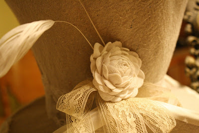 Pat yourself on the back! You have just made a top hat. It's cute but decorating it will make it even better. Use those wires we put in the brim to roll the edges of the brim. I just bend mine until I like how it looks.Add whatever you like. I added lace, a ric rac flower and feathers.